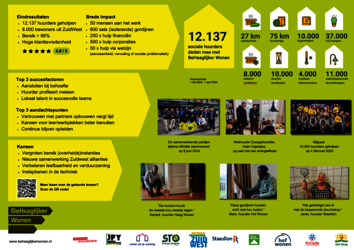 De teams van BeHaaglijker Wonen gaan de komende tijd de wijken in Den Haag Zuidwest in. Buurt voor buurt en straat voor straat gaan de teams bij huurders langs om tips en advies te geven over energiebesparing. Ze plaatsen ook energiebesparende producten, zoals waterbesparende douchekoppen, tochtstrips en radiatorfolie.