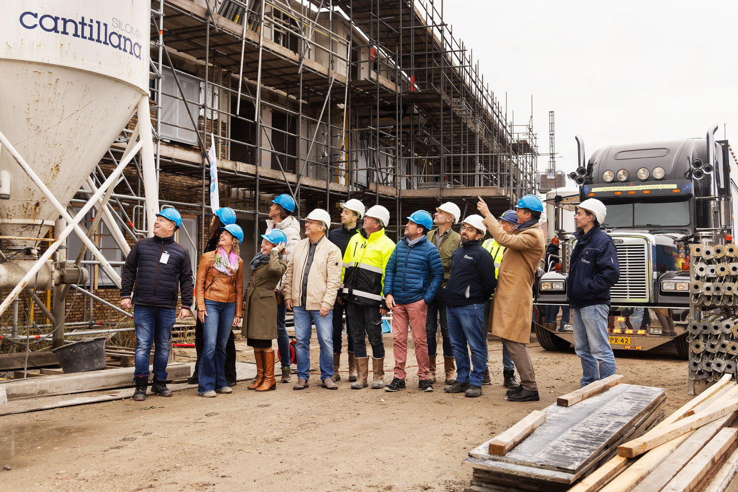 Foto 1 - Projectbetrokkenen tijdens de viering van het hoogste punt.
